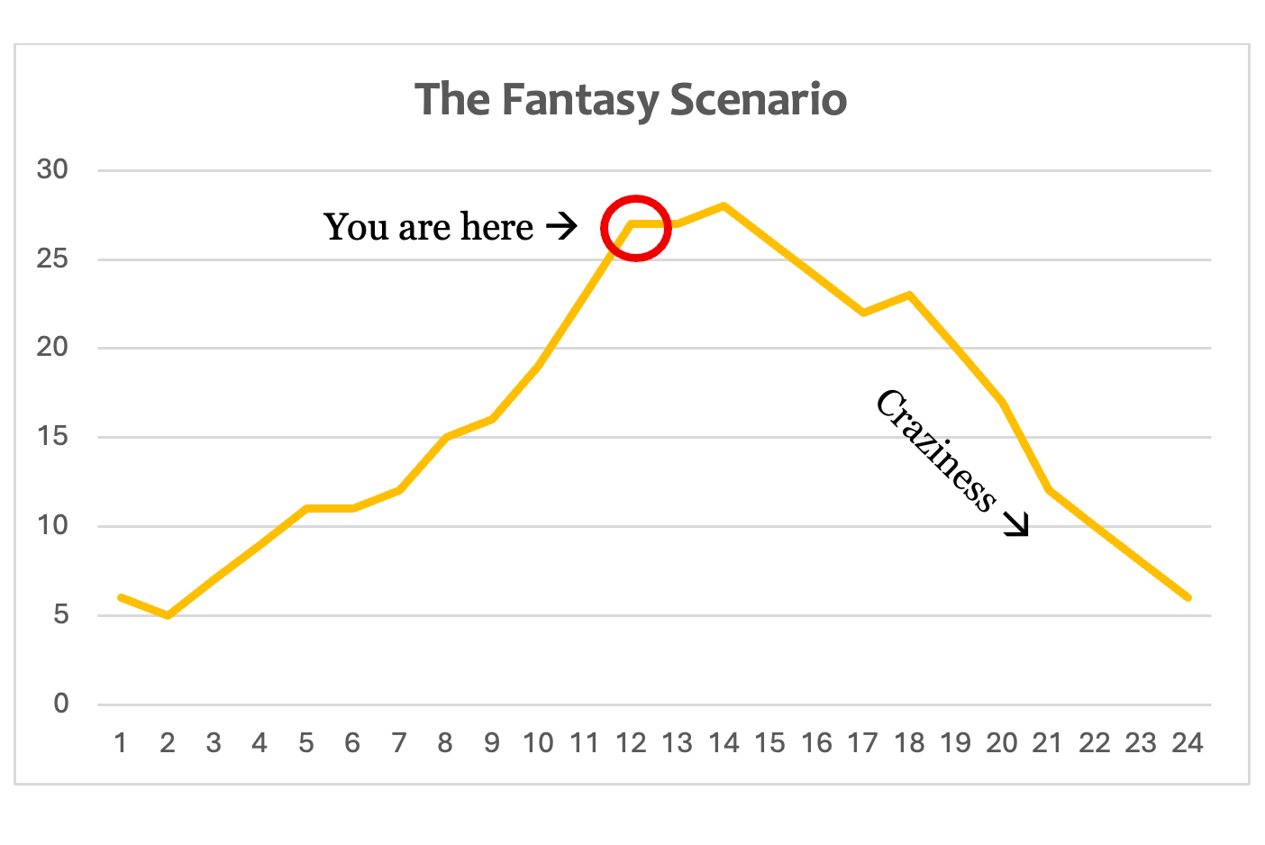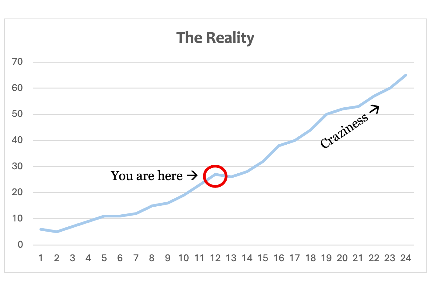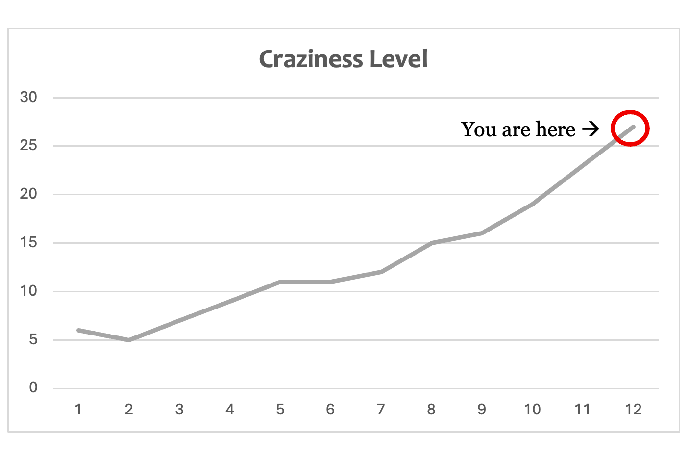 People’s minds naturally expect a return to normalcy. At the top of the post, I pinned a sort of fake graph that illustrates a “craziness quotient” as it advances by month. Things started out bad and immediately got worse. And they still are.